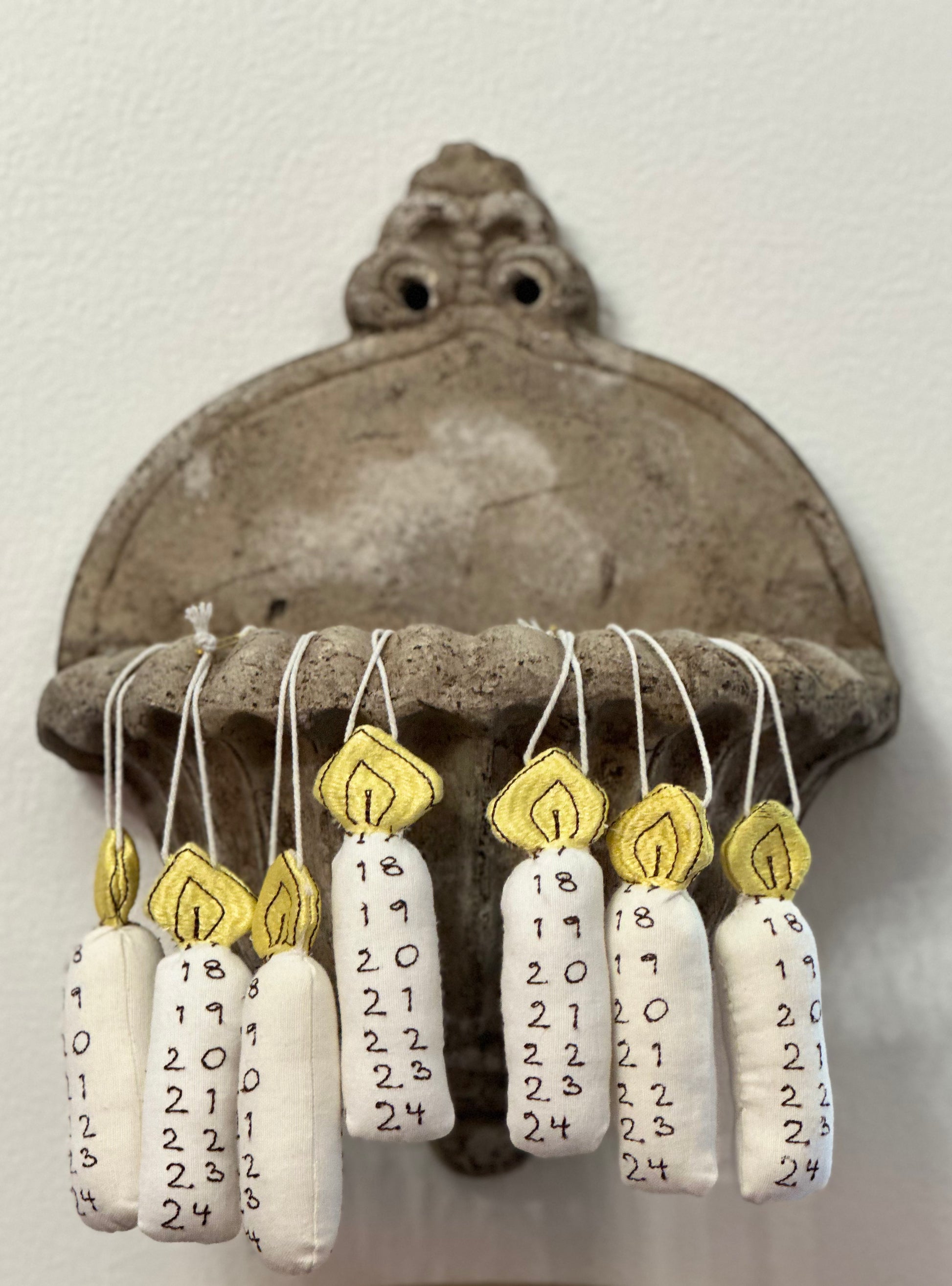 Smukke broderede kalenderlys med en snor, der gør dem perfekte til ophæng på årets juletræ 🌲