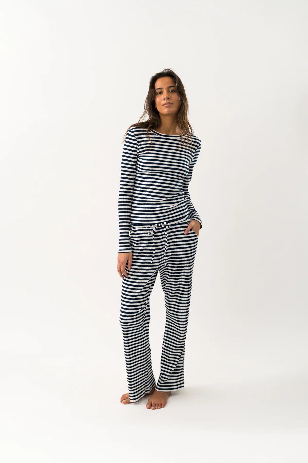 Vi er vilde med vores MayellaLL Top – en hyldest til komfort og den klassiske Lollys-stil. Den er fremstillet i en blød og udsøgt kvalitet, der føles skøn mod huden og giver en følelse af luksus i hverdagen. Striber er altid en tidløs og flatterende detalje, og denne top har lange ærmer og en rund halsudskæring. MayellaLL Toppen fås i to smukke farvekombinationer: Rød/hvid eller marineblå/hvid. Pasformen og materialet følger dine naturlige kurver, og den er særligt behagelig, når den styles med vores RitaLL bukser.
