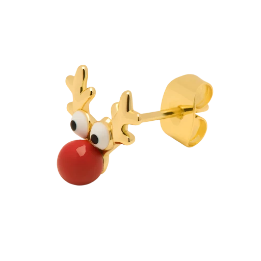 Rudolph ørestikken fra LULU Copenhagen er den perfekte måde at bringe festlig stemning ind i din smykkesamling. Med sin finurlige silhuet, der fanger essensen af julen, prydes denne ørestik med karakteristiske rensdyr ører, store øjne og en iøjnefaldende rød næse, der gør den til et sandt blikfang.